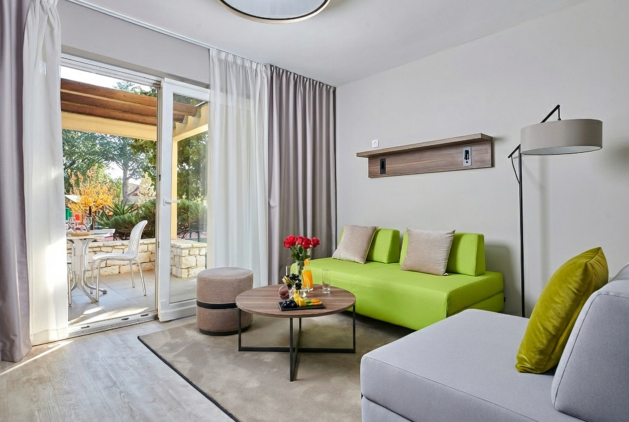 Residence Garden Istra nudi suvremene sobe s 4 zvijezdice, dizajnirane za obitelji koje traže udobnost, prostor i opuštenu atmosferu. Smješten odmah uz potpuno renovirani Hotel Garden Istra, omogućuje miran boravak s potpunim pristupom svim novoobnovljenim sadržajima i aktivnostima prilagođenim obiteljima glavne hotelske zgrade. Gosti mogu uživati u moderniziranim restoranima, živahnom work & play lobbyju, šarenim igralištima, trampolinima, multifunkcionalnim sportskim terenima, unutarnjim i vanjskim bazenima te interaktivnom vodenom parku za neograničenu obiteljsku zabavu. Dobno prilagođeni dječji klubovi potiču kreativnost i druženje, dok posebna zona za odmor omogućuje roditeljima potpuno opuštanje.